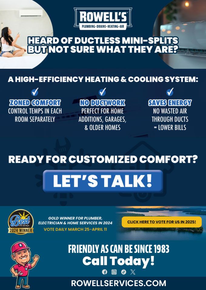 "Friendly As Can Be Since 1983!" When you need help with your plumbing, drains, heating, cooling or electrical in Manchester, you can always rely on Rowell's Services! Call us now or book online!