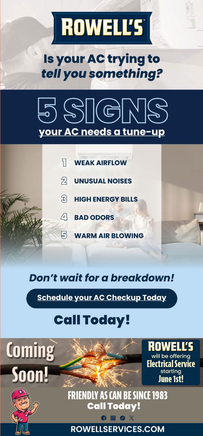 "Friendly As Can Be Since 1983!" When you need help with your plumbing, drains, heating, cooling or electrical in Manchester, you can always rely on Rowell's Services! Call us now or book online!